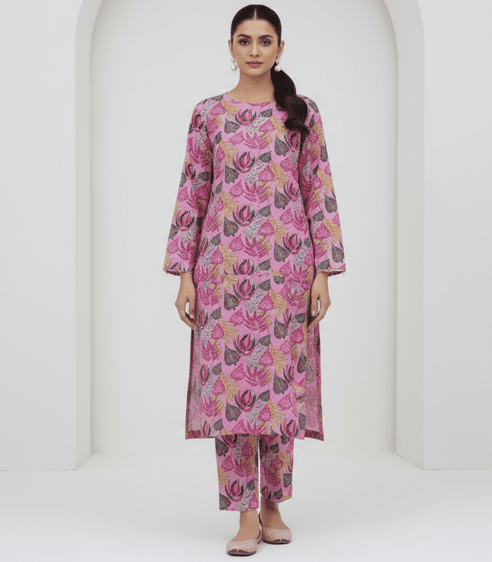 2 Piece – Printed Pink Khaddar Suit