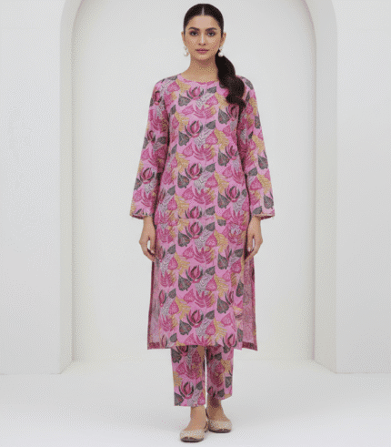 3 Piece - Shocking Pink Printed Khaddar Suit