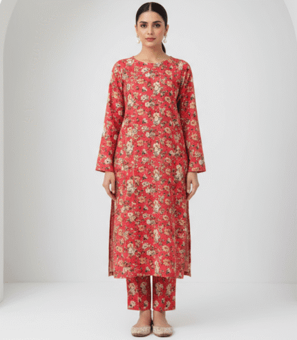 This elegant 3-piece khaddar suit features a black base beautifully adorned with red floral prints. Crafted from high-quality khaddar fabric, it offers warmth, durability, and refined style — perfect for winter gatherings and casual wear.